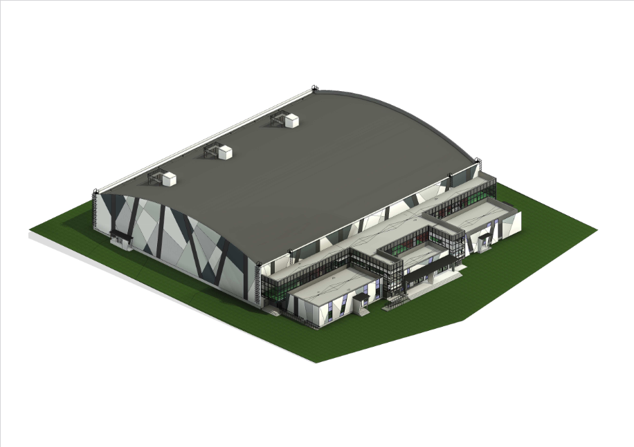 Один из интересных для «ЭРКОНСИБа» проектов – футбольный манеж в Новокузнецке с пролётом 60 м. Фото: КУЗБАССГОРПРОЕКТ