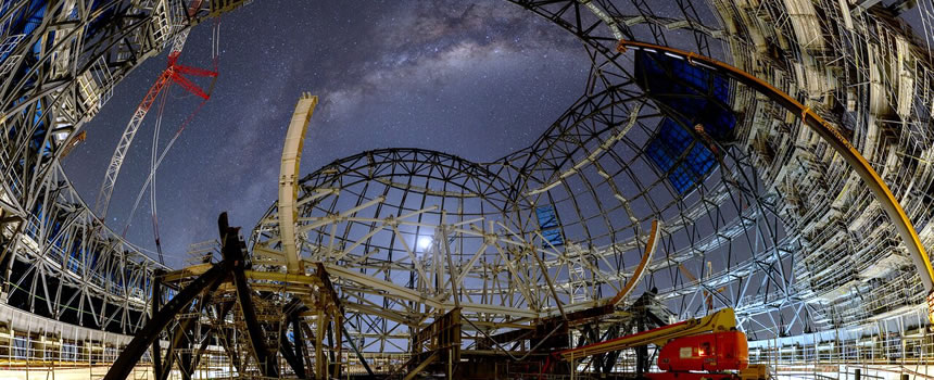 На данном этапе завершён монтаж конструкции купола. Его высота составляет 80 метров, ширина – 88 метров. Теперь предстоит облицевать его алюминиевыми панелями, которые содержат защитные теплоизоляционные слои. Они нужны для защиты телескопа от солнечных лучей в пустыне Атакама, которая считается одним из самых засушливых мест на планете.