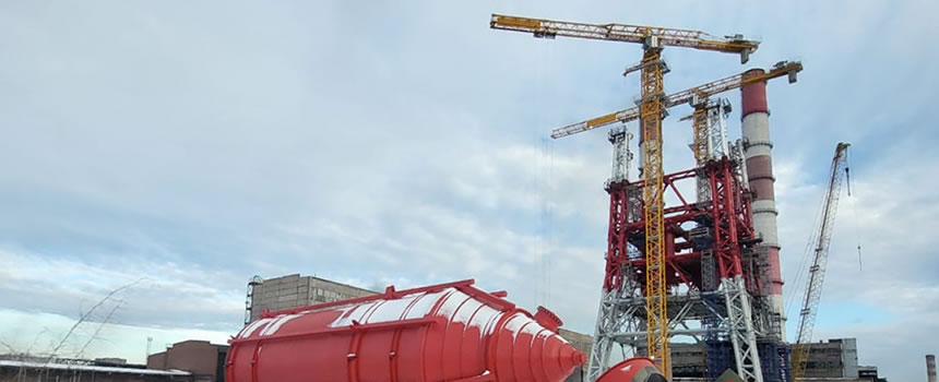 Напомним, что первые металлоконструкции — опоры для вытяжной башни — были отправлены на стройплощадку осенью 2023 г. Монтаж начали в 2024 г.