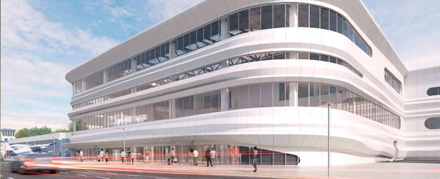 На железобетонный каркас нового терминала барнаульского аэропорта началась установка панелей с панорамным остеклением. Фасад с тёплым контуром не только утепляет здание, но и формирует его современный облик.