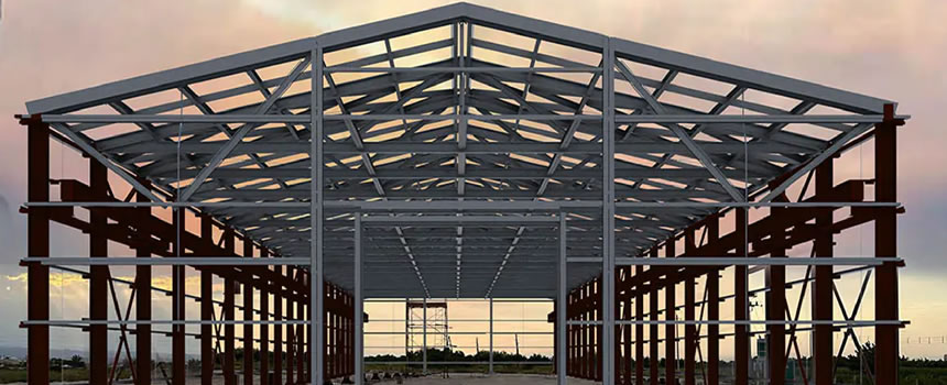 Каркас дополнен воротами и дверьми, а также металлоконструкциями под ленточные окна. Основу несущей системы составляют сварные двутавровые балки и треугольные фермы из оцинкованного ЛСТК. Такое сочетание обеспечивает высокую устойчивость и «гибкость» при землетрясениях. Удельный расход металла составил всего 53,7 кг на кв. м.