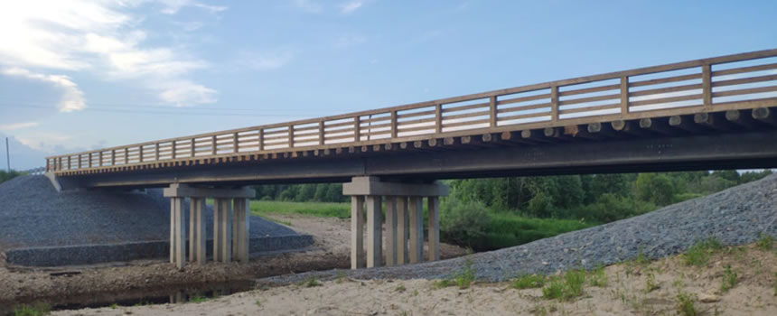 На основе данного решения уже построены и введены в эксплуатацию малые автодорожные мосты в Архангельской области через реки Юбру, Пуксу и Химу.