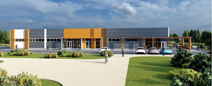 ТЦ откроется в парке рядом с летним кинотеатром. В нём будут супермаркет, товары для сада, фермерская лавка, пункт выдачи интернет-заказов и кафе с террасой. Проект был рассчитан без учёта навеса и декоративных фасадных элементов с помощью 3D-конфигуратора по исходному эскизу.