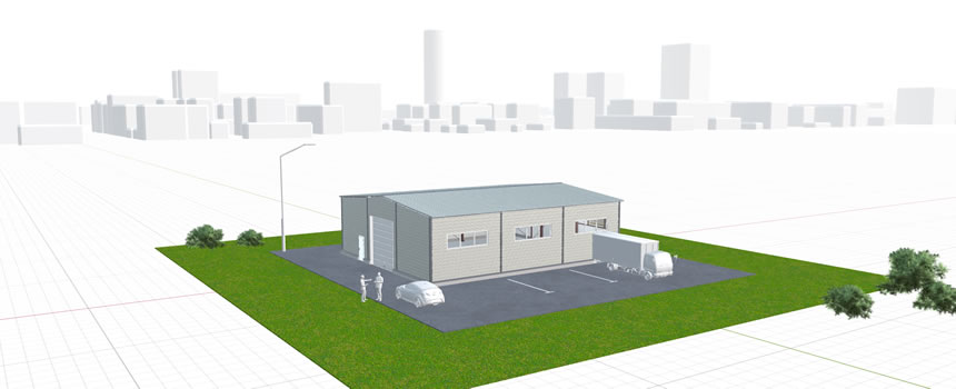 Рассчитаем в 3D-конфигураторе промышленное здание площадью 270 кв. м в посёлке Неклюдово от EVRAZ STEEL BOX.