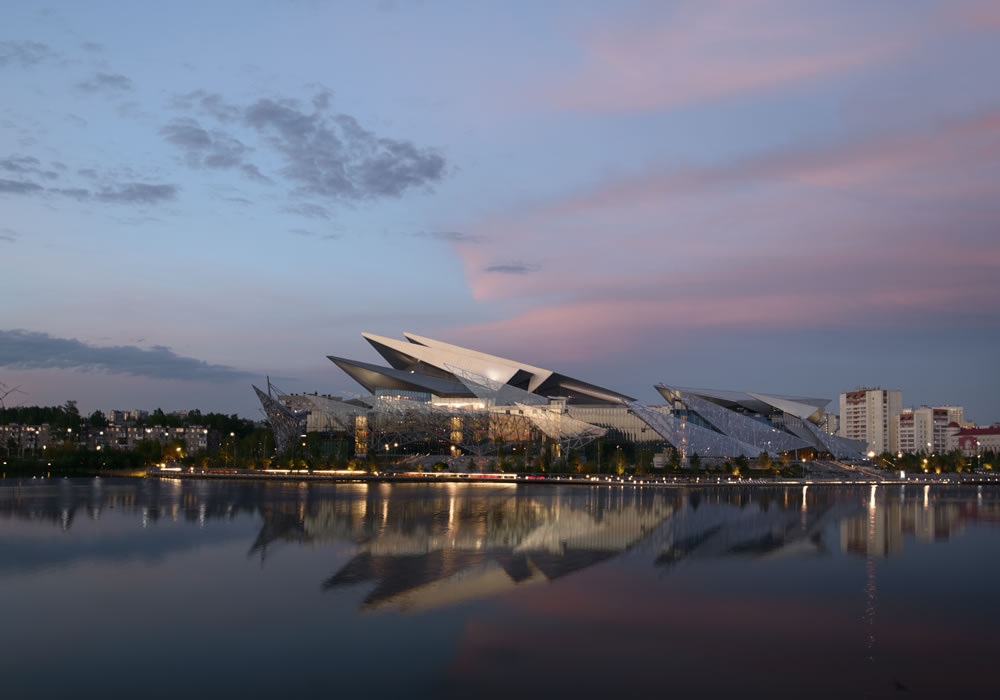 Получилось очень эффектное здание, будто созданное из кусков льда.